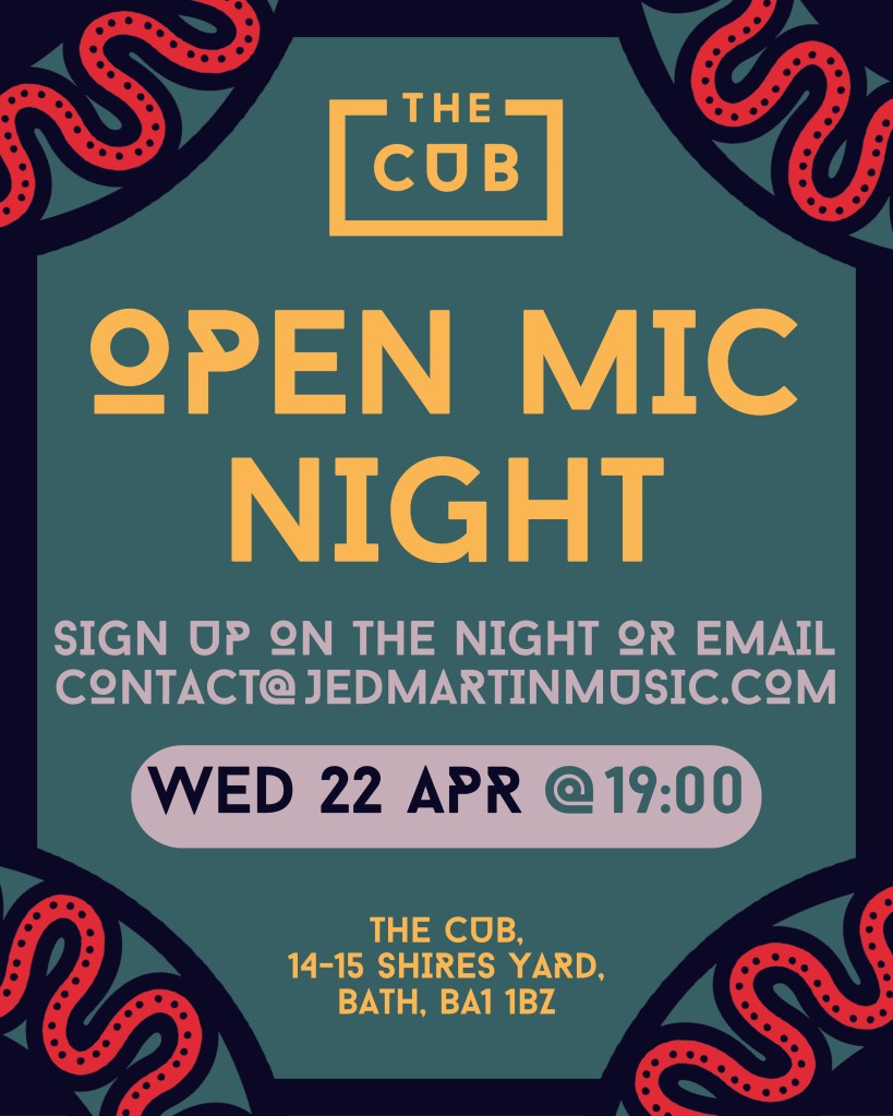 Wednesday 22nd April – The Cub Open Mic – Shire’s Yard, Bath, BA1 1BZ – 7pm
